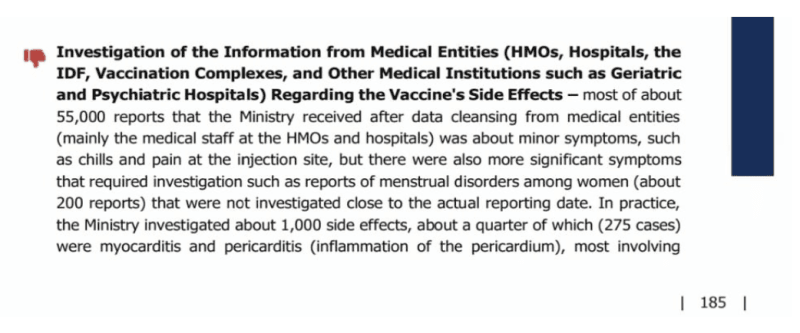 As the State Comptroller himself noted, while many reports received from medical institutions described minor symptoms, others involved “more significant symptoms that required investigation…[yet] were not investigated close to the actual reporting date.” In practice, the report adds, “the Ministry investigated about 1,000 side effects, about a quarter of which (275 cases) were myocarditis and pericarditis.” This finding reinforces the central concern raised by our analysis: that critical safety information submitted by healthcare professionals may not have been evaluated when it mattered most.