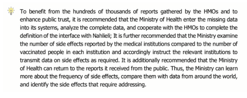 Yet, as the State Comptroller’s 2024 report revealed, the Ministry was also aware of significant reporting gaps at a very early stage, at least as early as February 2021. This leads to a central question: Why, despite knowing both the risk and the technical glitches, did the Ministry fail to analyze the actual content of nearly 300,000 reports to determine whether a safety signal was present?
