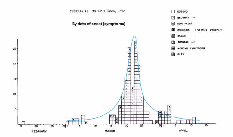 My primary sources were a document published by the WHO in November 1972 and a paper published 50 years later. Another recent paper also provided a historical review of the population of Kosovo, where almost three-quarters of the cases have occurred. As expected, all three papers and others attribute the end of the smallpox outbreak in Yugoslavia to the public health response, which included contact tracing, quarantines, lockdowns, and mass vaccination. Was that indeed the case?