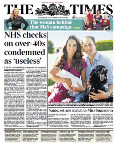 A year later, we had had enough of all the tricks and published a letter in The Times, with the funny title, “Health check check,”9 which resulted in a front-page interview next to a large photo of Prince William, his wife and child, and a royal dog: