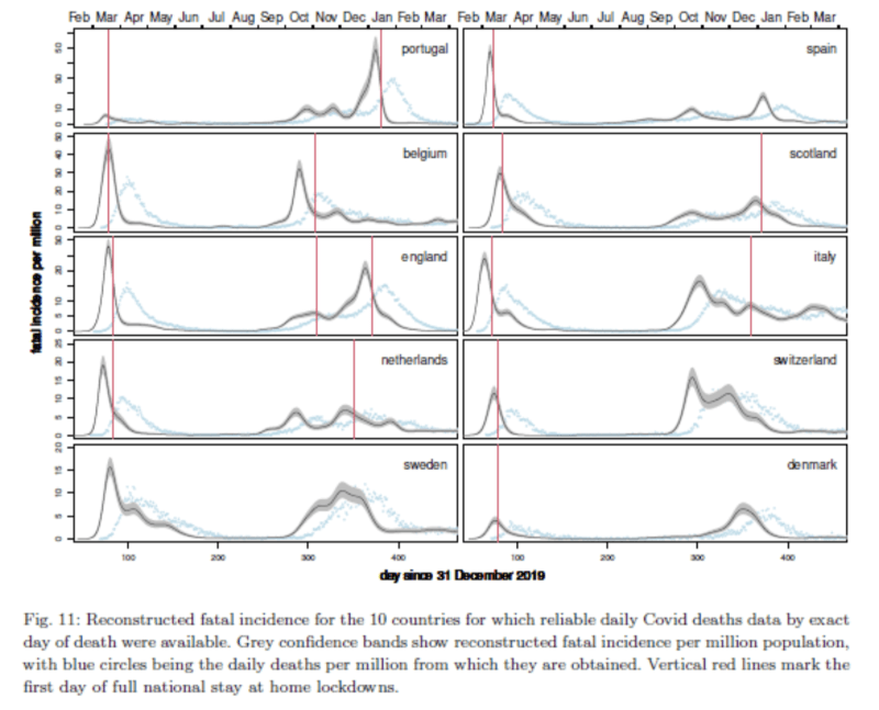 UK predictions were consequently far above reality – as were predictions of lockdown impact. Lockdown models assumed reproductive rate (R0) would be constant before or after lockdowns without intervention, whereas in reality it always varies with time, steadily declining from an initial peak as fewer people remain susceptible to being infected per case, as more of the population is immune. Again, this is really, really basic outbreak modeling. Consistent failures (e.g. non-lockdown Sweden having about 6,000 deaths instead of 35,000) failed to stimulate any modification and rectification of these basic errors.