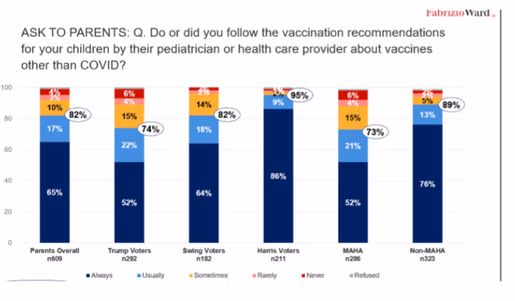 The results of a Fabrizio poll from February 2026 have not been made publicly available. But a memo released from Tony Lyons of MAHA Action reports even more salient facts. A plurality of all voters believe that families should be given a choice over vaccination.
